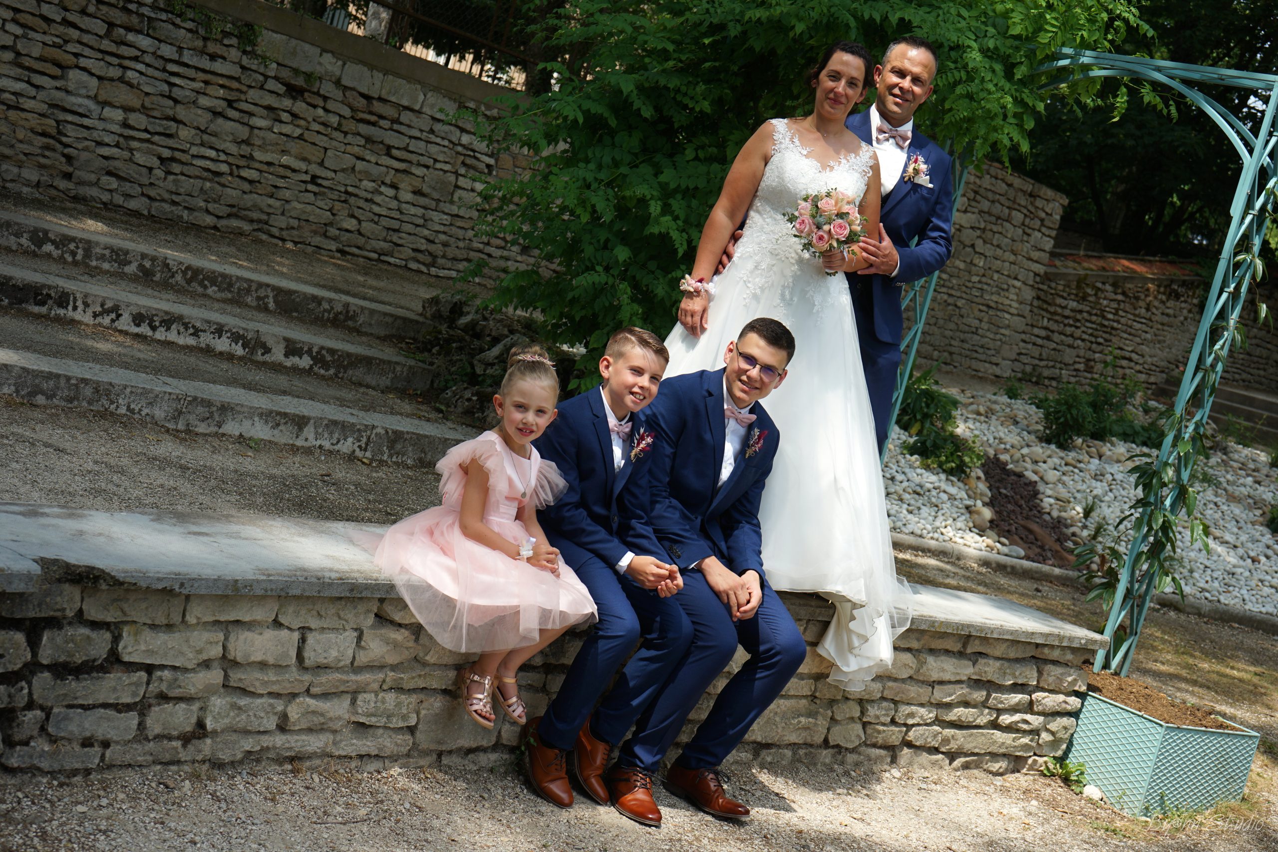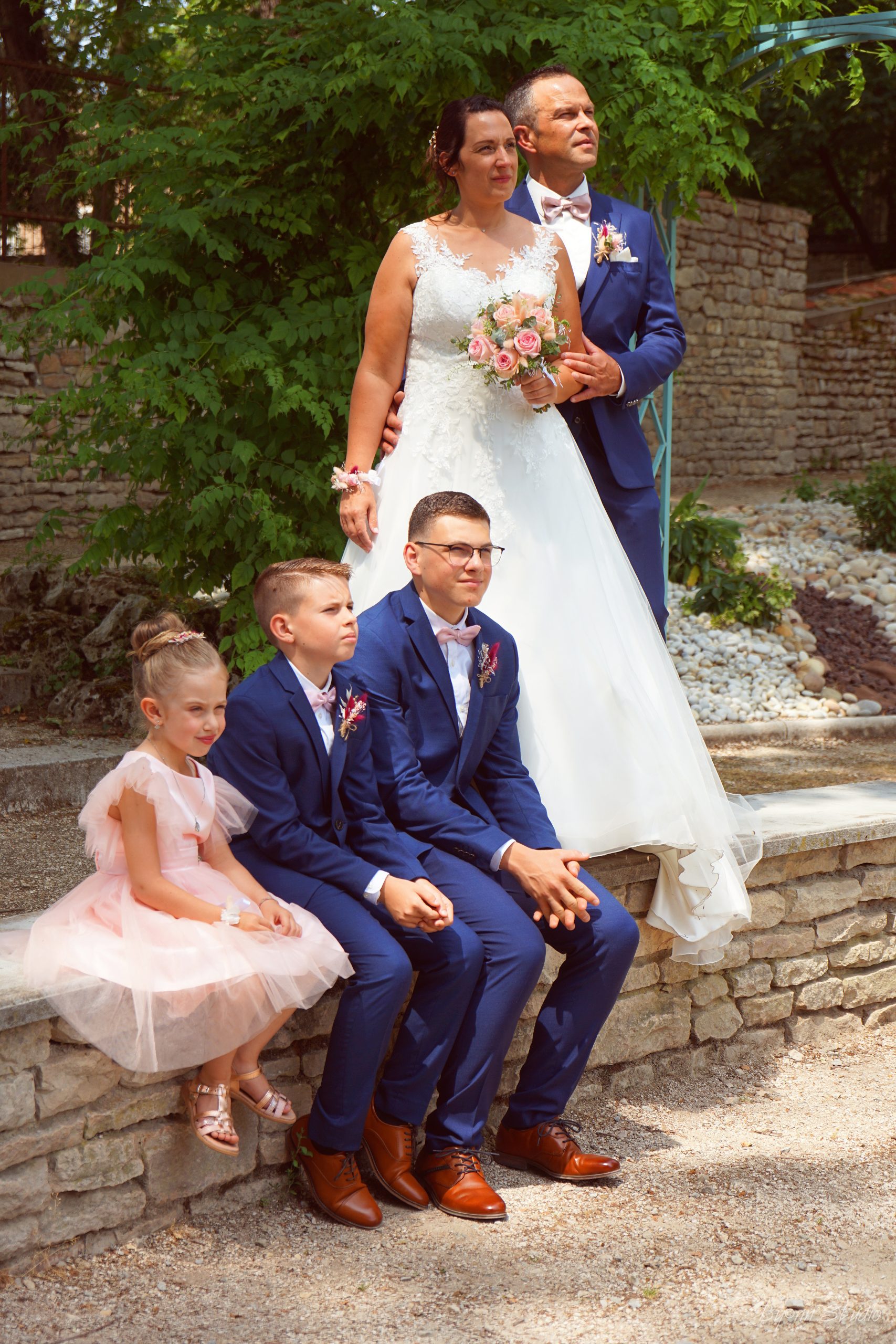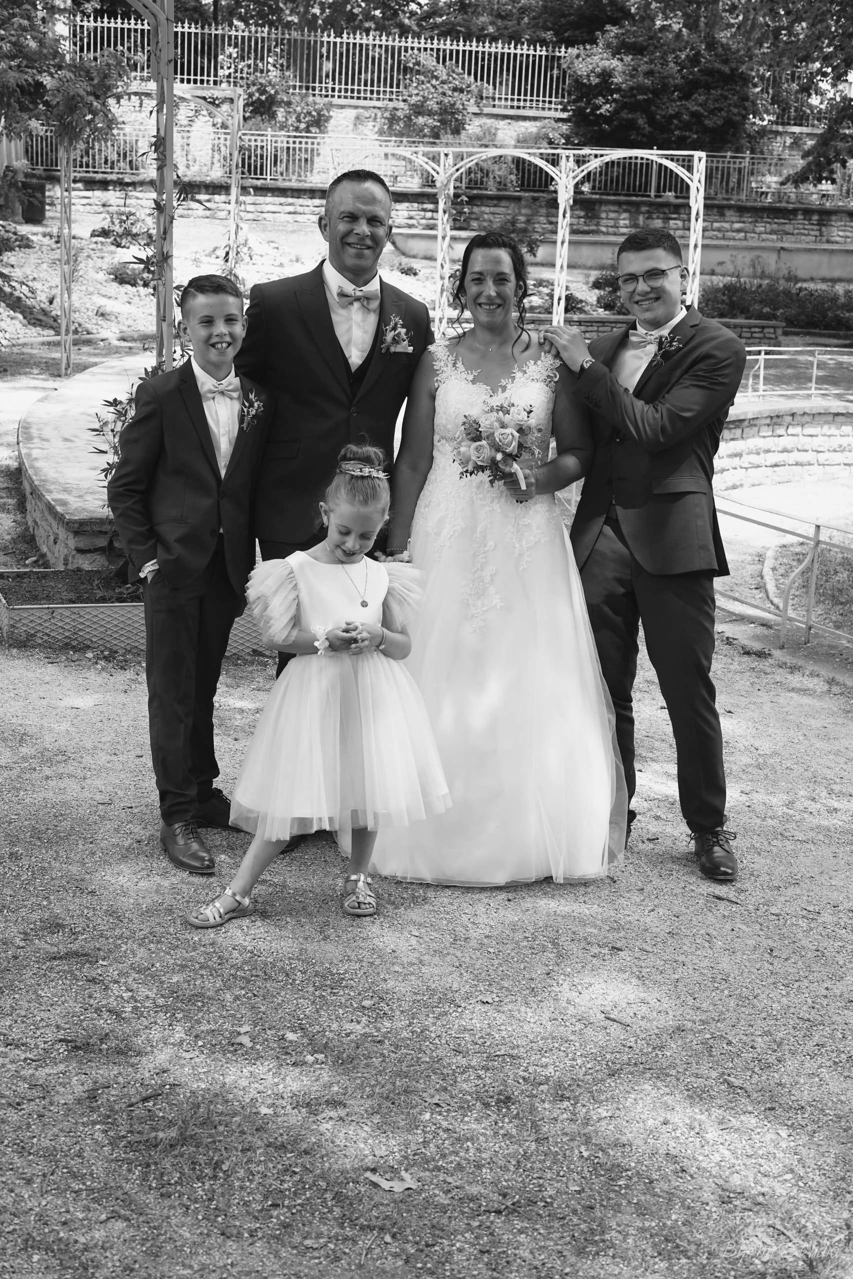 Un beau résumé de notre journée, entouré des nos familles, enfants, témoins, demoiselles et garçons d’honneur, amis, collègues. Cela restera une journée gravée dans nos coeurs.
