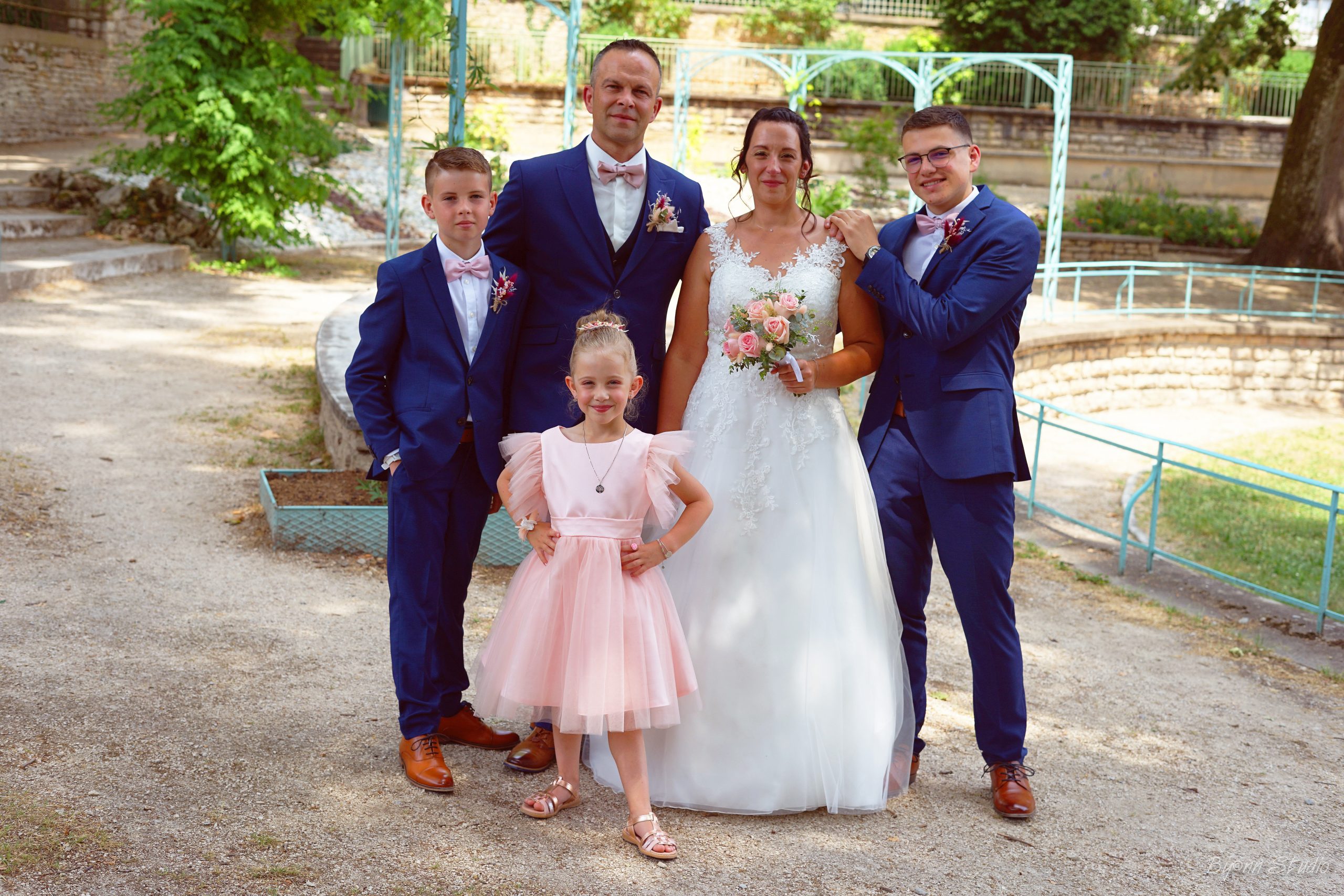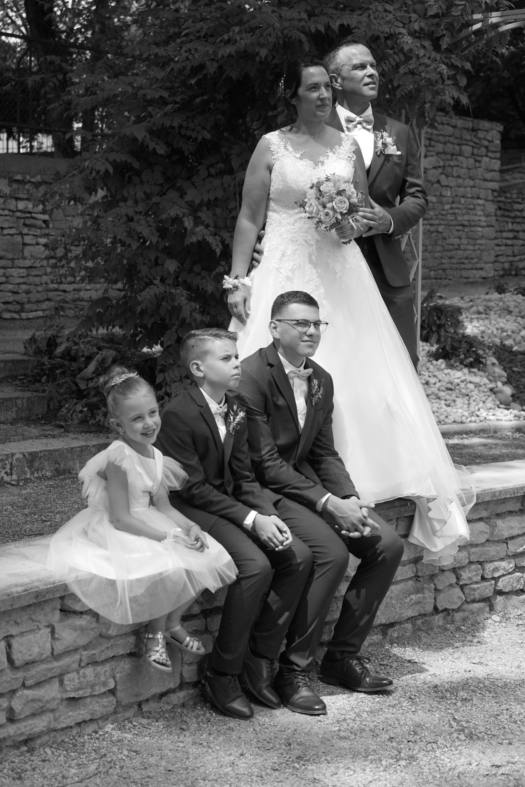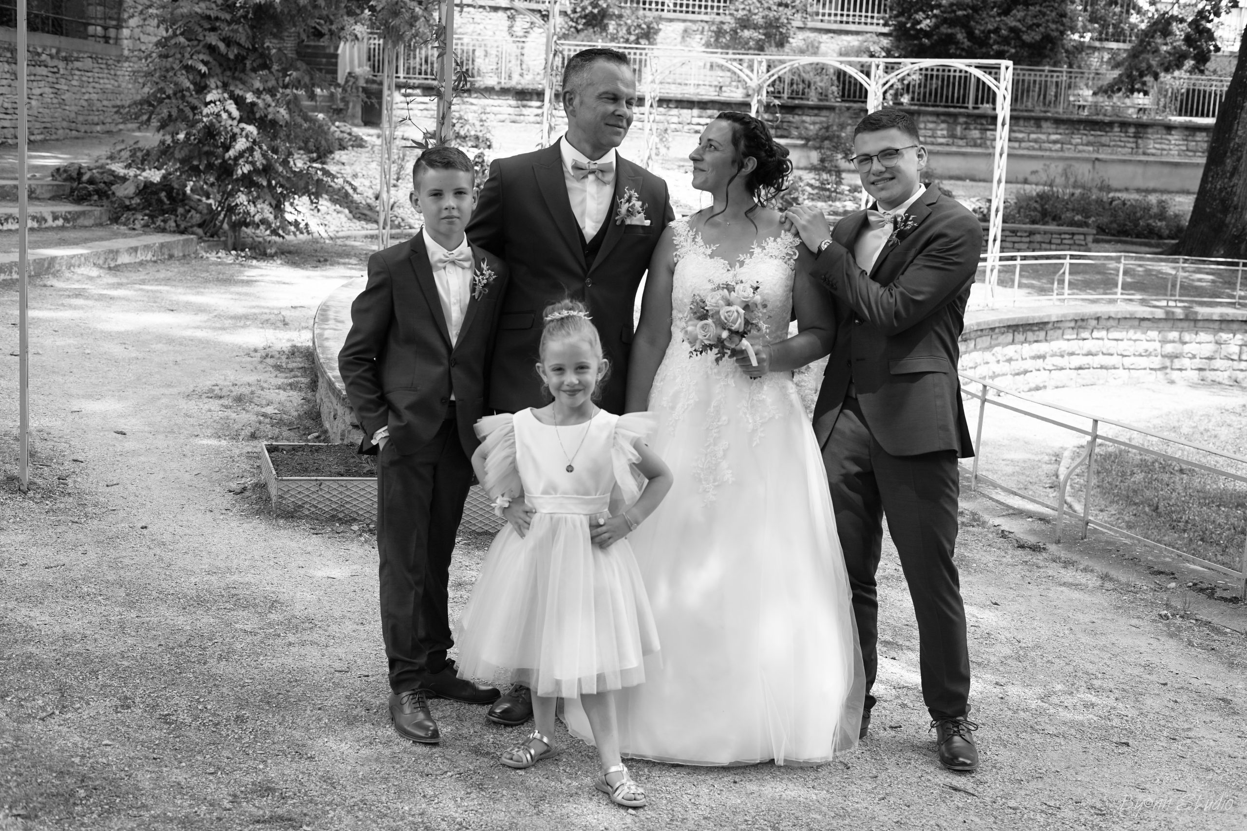 Un beau résumé de notre journée, entouré des nos familles, enfants, témoins, demoiselles et garçons d’honneur, amis, collègues. Cela restera une journée gravée dans nos coeurs.